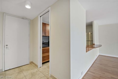 1408 -Charming one bedroom suite in very special Winton Place offering relaxing views of Lake Erie and picturesque sunsets. Entering the tiled foyer, you will find a closet to your right and to your left is the partially open kitchen featuring cherry cabinets, granite countertops, granite tiled backsplash, along with stainless steel appliances and tiled flooring. The living room has laminate flooring. The bedroom is carpeted with a custom closet. The bathroom (shower over tub) has been completely remodeled with new tile, cabinet, fixtures, and lighting, as well as a glass shower door. The seller will offer a credit to replace the foyer closet door. A garage space for lease may be available. Monthly maintenance fee includes heat, water, sewer, air conditioning, window washing three times/year, and AT&T fiber optic internet. Cats are allowed, but no dogs except emotional support and service, along with proper documentation. Winton Place offers a full complement of amenities including 24/7 manned, courteous reception and security, on site management and maintenance, Olympic size swimming pool and sauna with adjacent patio equipped with gas grills, and fire pit, lounge chairs, and observation deck, lovely recently remodeled party room with wet bar for your entertaining needs, tennis and pickle ball courts, two guest suites, conference room, billiards/game room, newly expanded secure fitness center, snack/pantry, and award winning Pier W Restaurant! This is resort style living at its finest!