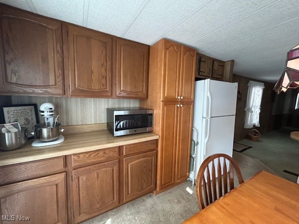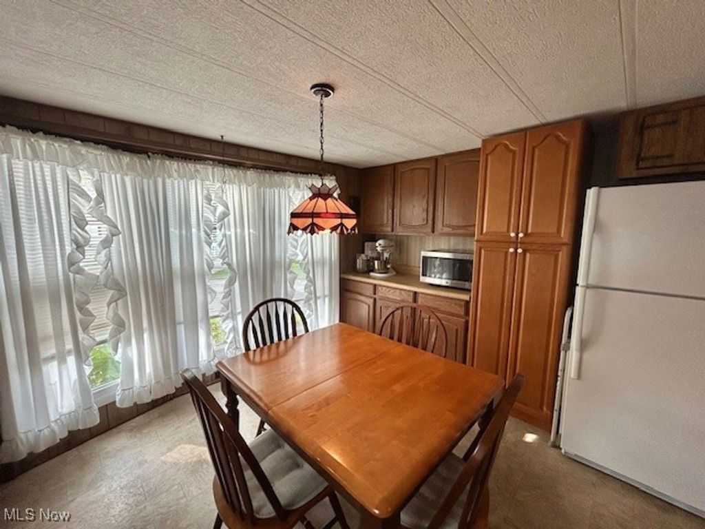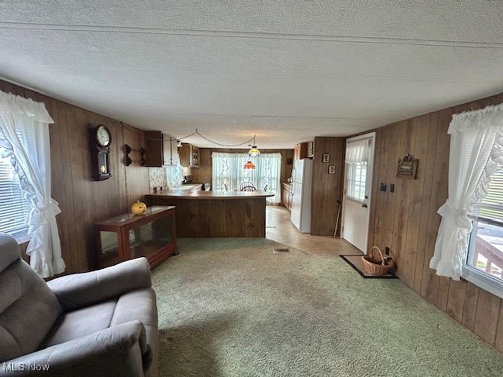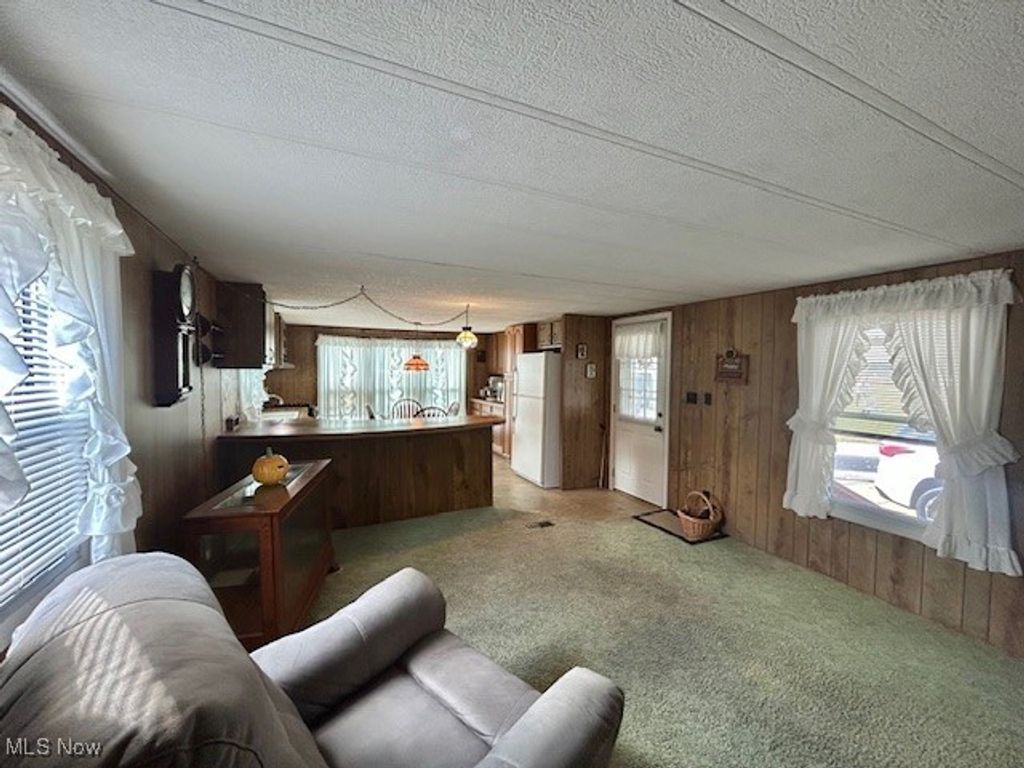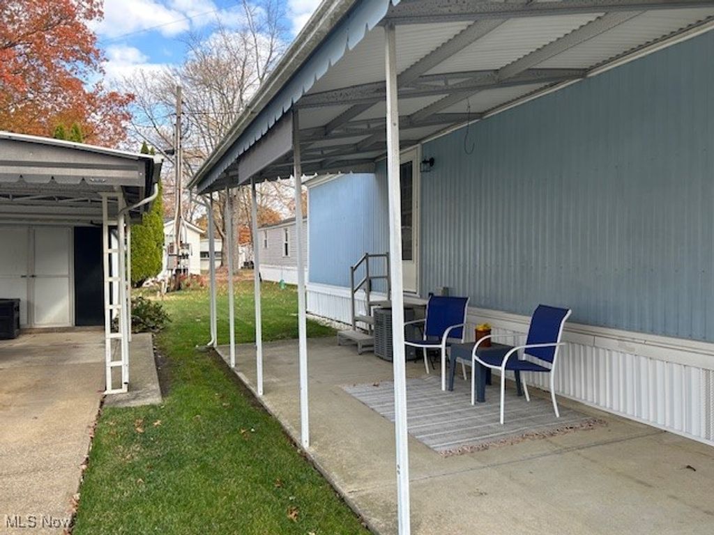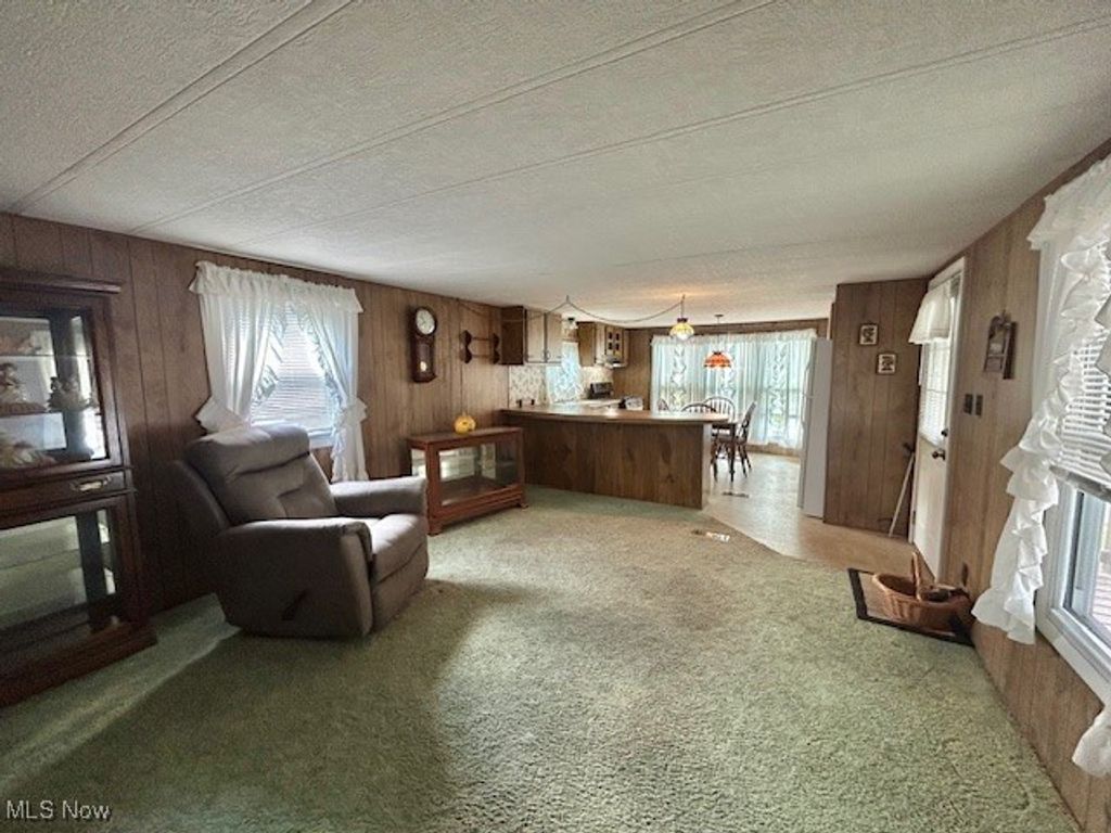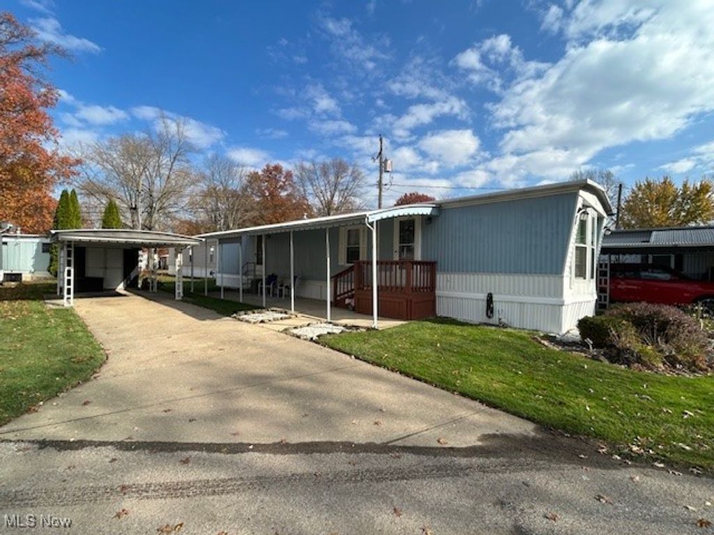 Welcome to this well maintained single wide manufactured home! The Open concept Living Room and Eat-In-Kitchen is a very nice feature when having friends or family to visit. There is a also a large peninsula that adds to the counter top space and is perfect for entertaining, cooking or baking. Updates include Furnace/AC, all windows have been updated, however the kitchen windows have been recently upgraded to double pane, Whirlpool washer/dryer are newer, water lines replaced, roof recently re-coated with DayCraft roof coating, deck and steps replaced(2025) Exterior has been painted and has a nice fresh appearance. One car Carport, aluminum awning over the large concrete patio. This cozy and low maintenance home will be such a joy to come home to! Call today for your personal appointment!