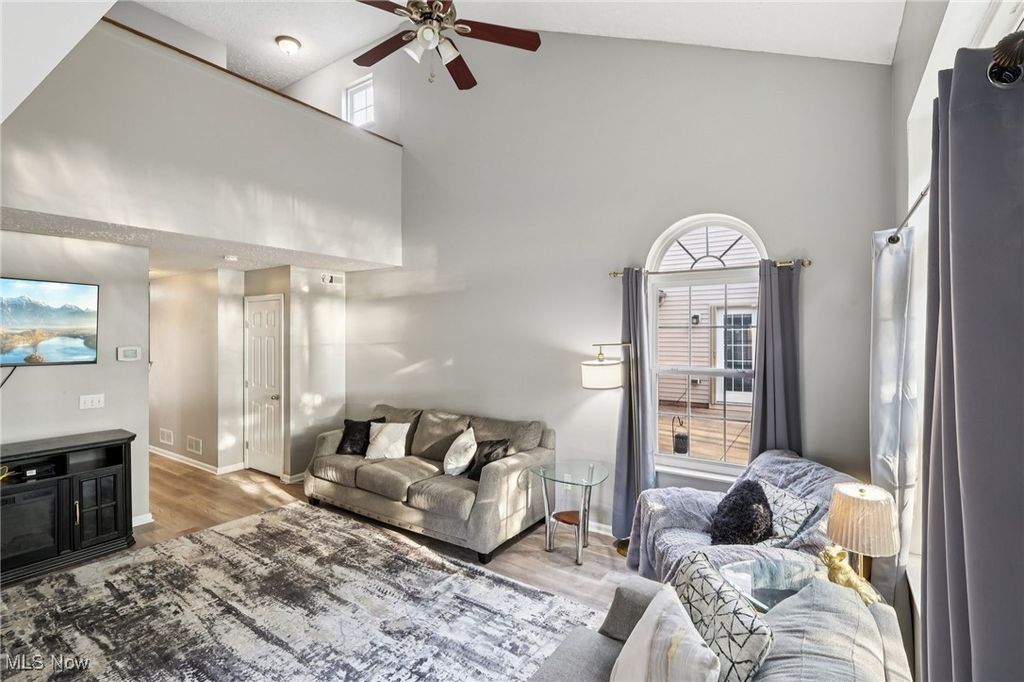 Welcome to this cozy colonial nestled in the highly desirable Crystal Lake community. This charming home offers an inviting open floor plan, filled with natural light and thoughtfully designed spaces perfect for everyday living and entertaining. Step into a spacious entrance foyer that leads into the bright and airy living room, complete with vaulted ceilings and a dramatic second-floor overlook. From here, enjoy easy access to the beautiful rear yard, featuring a lovely deck and a private fence line of mature arborvitaes - the perfect backdrop for mornings with coffee or evenings outdoors. This home features three generous-sized bedrooms, including a first-floor master suite with private access to a full bath. This versatile space can also function as an ideal den, guest room, or bonus area depending on your needs. Upstairs, you'll find another large primary bedroom boasting double closets and vaulted ceilings, along with an additional well-sized bedroom. Convenience is key with first-floor laundry, an adorable front porch, and low-maintenance living in a quiet, established neighborhood. Nature lovers will appreciate being just steps from parks, ponds, and scenic walking trails, while also enjoying quick access to the Cleveland Metroparks, Baldwin Wallace University, and downtown Berea - offering local dining, shopping, events, and entertainment. This Crystal Lake colonial offers the perfect balance of charm, comfort, and convenience - a place you'll love to call home.