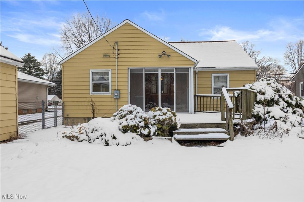 Welcome Home! This gorgeous Cape Cod offers an incredible opportunity to buy your new home in Olmsted Falls and make it your own! As you walk in the front door, you'll immediately notice the gorgeous hardwood flooring that is throughout the home! The living room is huge and has a woodburning fireplace. Open to the living room, you'll find the spacious dining room. The kitchen is a great size with wood cabinetry and loads of storage. Off of the kitchen, you'll love the screened in patio which leads to the wood deck and back yard. There are 2 nice sized bedrooms with ample storage closets on the main level with the full bathroom along with a 3rd bedroom in the upper level complete with built ins and even an unfinished space that would make a great possible future closet, office space or even dressing room! The full unfinished basement has glass block windows, was waterproofed and is ready for your finishing touches! Hot water tank was replaced in 2023-24. Don't miss out on this sweet home, opportunities like this don't come along often in Olmsted Falls!