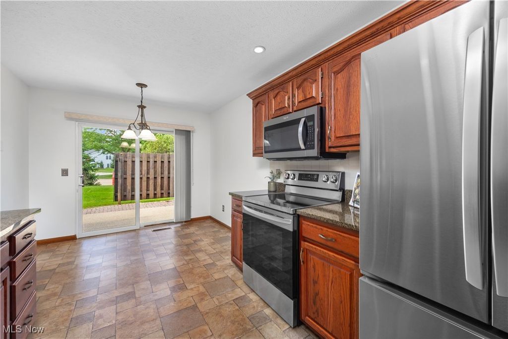 Welcome Home to your new Cinnamon Woods Ranch! As you walk up to the front door, you'll notice the cozy front porch, perfect for enjoying time outdoors. This gorgeous home is truly move in ready! It has refreshed landscaping, been completely professionally cleaned and painted throughout including walls and ceilings, and even includes a brand new refrigerator, range, washer and dryer! It has vaulted ceilings throughout the dining room, family room and bedrooms which gives it such an open and airy feeling! The kitchen has been nicely updated with fresh paint and has oak cabinetry, granite countertops, faucet with sprayer, stainless steel appliances including the brand new refrigerator and range. The oversized family room is open to the formal dining room and kitchen. There's a flex room that can be used for whatever you need and would make a great office or even a den. The second bedroom has vaulted ceilings and a walk in closet. There's an attached full bathroom complete with a shower tub combo and open to the hallway for guests. The master suite is spacious, offers a huge walk in closet along with your own private master bathroom complete with a shower. and even has your own private access to the outdoors through it's slider doors. The in-suite laundry room is nicely located off of the foyer, has oak cabinetry and shelving for storage along with a utility tub. The private main patio is located off of the kitchen, has a paver patio blocks and privacy fenced. This is nothing left to do... just pack up and move right in!