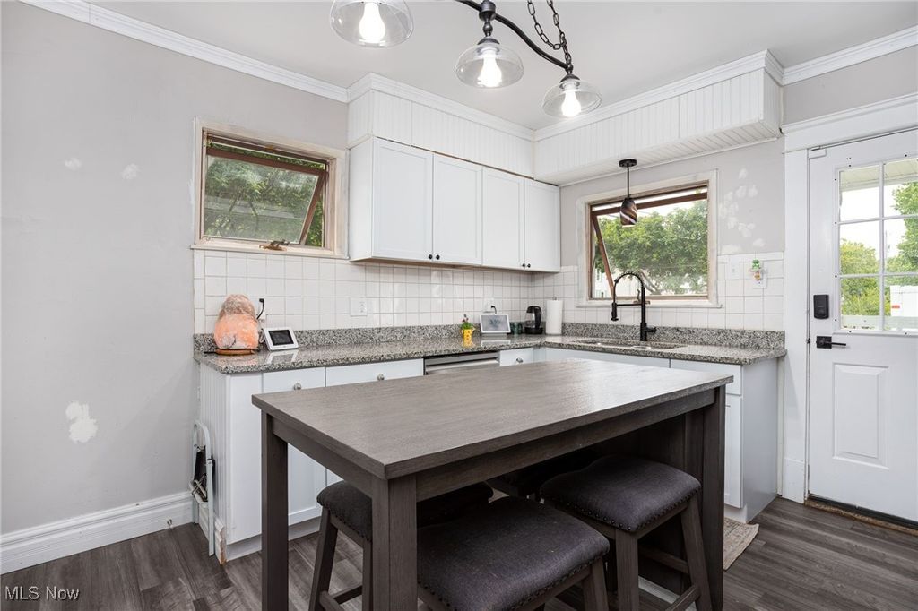 Nothing to do but move into this well cared for Century home near Medina Square. Updated while still maintaining its original charm. Vinyl flooring, cabinets, countertops, appliances, carpet, paint, lighting, central air conditioning, full bath and plumbing have been recently updated. Relax and enjoy the spacious front porch. Formal dining room with built in bench window seat. Large closets. Plenty of green space beyond the drive. Orginal location for this home was the next street over, it was relocated to this location in the 60's. Versatile stand up attic space just waiting for your ideas. A one year home warranty comes with this home! Call your favorite realtor to see this today before its too late!