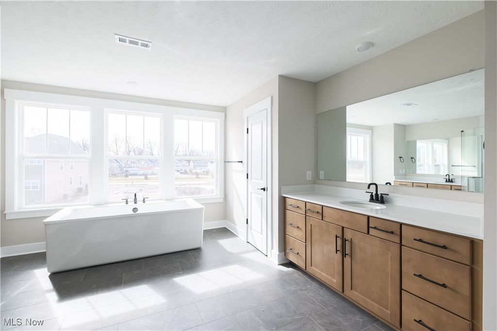 Brand new Pulte Skyview model ready for you to move-in and make it home at Legacy Isle Golf Course Community! The Skyview plan welcomes with a wide-open grand feel with tons of natural light. Located in the premier golf course community Legacy Isle of Avon Lake. This new home is built on a quiet private cul-de-sac site with extra wide and deep backyard just a short walk from the new pool. Enjoy cooking and entertaining in your gourmet kitchen featuring adjustable soft close cabinets with roll outs, hidden trash, double ovens, and Quartz countertops. The home has beautiful luxury plank flooring and 9ft. ceilings through-out the first floor and basement. The first floor features a grand laundry and pantry area, split office/living space that can be used for many purposes, along with a planning space and XL formal dining room. Upstairs the first stop is the grand owner s suite featuring a retreat area, walk in closet, and massive bathroom with custom features. Down the hall is a loft/game room space. Each second bedroom has a walk-in closet and an attached bathroom. Off the back of the home is a 32ft long raised covered porch with limited maintenance decking. An abundance of storage space outdoors with the 4-car tandem side entry garage. You will love your new Pulte home and the convenience of walking distance to the pool, golf course, clubhouse, driving range, and restaurant!