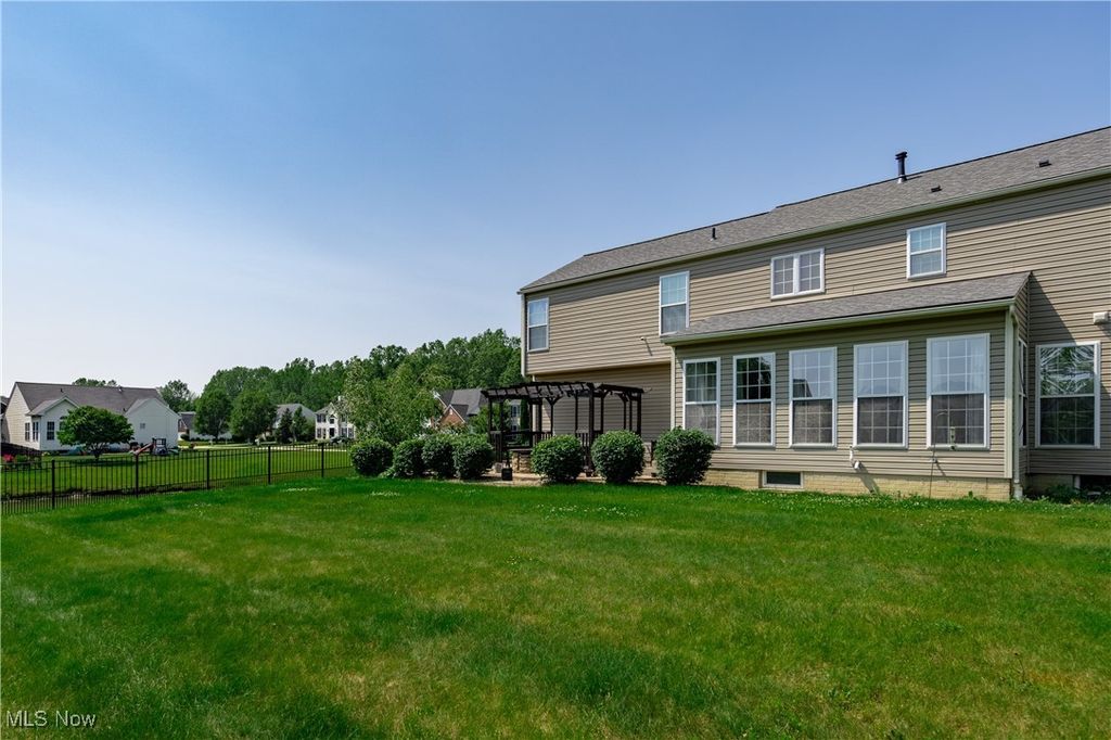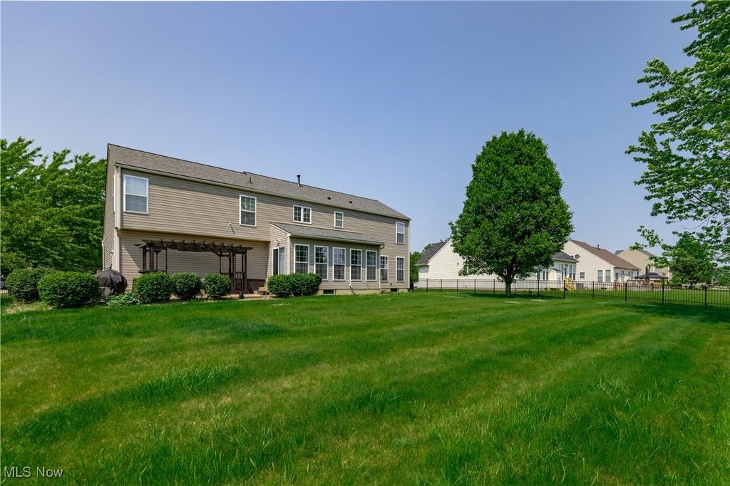 Welcome to this beautifully maintained 4-bedroom, 2.5-bath home in desirable Meadow Lakes. As one of the largest homes & lots in the neighborhood, you'll appreciate the spacious & functional layout featuring a private first-floor office w/french doors, formal dining room for entertaining, and a cozy family room with gas fireplace. Natural light floods the open-concept kitchen and morning room. Sliders lead to the fully fenced-in backyard with patio & a pergola - ideal for dining al fresco, & enjoying views of the peaceful pond with fountains. Back inside, head upstairs to the spacious master suite...your private retreat, boasting a luxurious en suite bath with soaking tub, dual sinks & separate shower, plus TWO walk in closets! Completing the upper level are three additional bedrooms - each with charming accent walls - and an updated 2nd full bath. Other recent updates include (but not limited to) new roof (2020), hot water tank (2019), new flooring leading upstairs & in 3/4 bedrooms (2024), & freshly painted throughout. Both the basement & the extra-deep garage provide valuable storage space. This move-in-ready home offers the perfect balance of comfort, style, and a tranquil setting - all just minutes from local shopping, restaurants, schools & highways. Schedule your showing today and fall in love with everything this home has to offer!