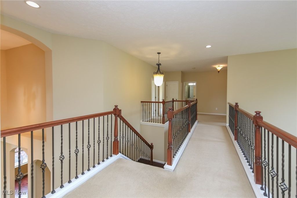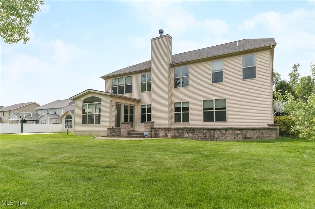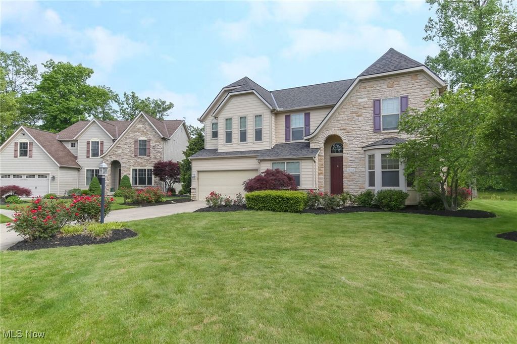 Nestled on a quiet cul du sac in highly desirable Stone Bridge Creek,this stately King James home beckons you.Well maintained showstopper & over 4400 sq ft.This stone clad stunner boasts soaring ceilings,open concept main living,& abundant natural light throughout.Feel welcomed as you enter the 2 story foyer.To the left is a perfect WFH office.To the right is one of many living spaces.Making your way into the main living, notice the gorgeous stairway, focal fireplace,& attention to detail.Cherry wood floors guide you into the well appointed eat in kitchen, complete w abundant solid wood cabinetry,SS appliances,granite countertops,& island w breakfast bar.Kitchen overlooks the 4 season,window clad,morning room.Possibly the best spot in the home,this space grants serene views of the backyard w stocked pond,& frequent blue heron visits.2 story great room is sure to accommodate even the most discerning buyer.Down the hall is an additional flex space that can work for an extra bedroom,office,or playroom. 1st floor mudroom and half bath complete the main level.Up the double stairway is an open loft space w endless possibilities.2nd level provides 3 sizable bedrooms,large full bathroom,& impressive Owner's suite,complete w cathedral ceilings,a true glamour bathroom,walk-in closet,& those gorgeous views.Finished Lower level is perfect for a recreation retreat,theatre,or additional living suite,w yet another full bathroom.Enjoy the outdoors from the custom stone patio, lush landscape,& calming waters.2 car garage completes the tour of this move in ready home.Rest assured with new roof,well maintained mechanicals,& ample storage thru out.Close to all things Avon,Stonebridge Creek provides community pool, clubhouse & terrific playground.This neighborly vibe can be yours on Bradford Lane & is priced to sell, schedule your private showing today and be a part of the incredible community that is Stone bridge Creek.