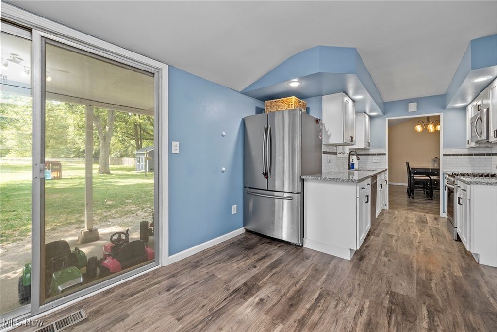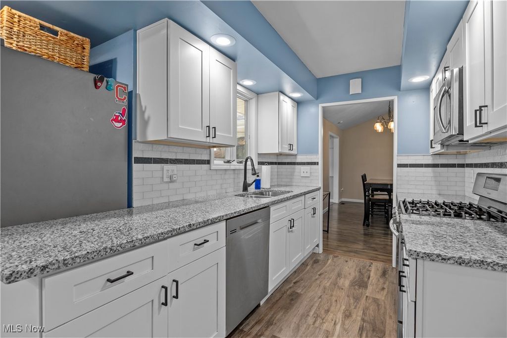 Welcome Home to this Updated Olmsted Township Ranch situated on .56 acres! There are 3 nice sized bedrooms and a flex room which is perfect as an office or playroom along with 2 full baths and 1 half bath giving you all the space you'll need! When you walk through the front door, you'll be amazed by the vaulted ceilings in the spacious, open living room and formal dining room! This area is open to the family room space as well. And the kitchen is a dream! With classic white cabinetry, granite countertops, subway tile backsplash, black faucet, cabinet hardware accents and stainless steel appliances. (2019) There's a laundry room with a storage area as well which makes a nice pantry. The lower level basement is unfinished and also has a crawl space perfect for additional storage. The outdoor living is just wonderful! With a full wood privacy fence, back patio that has a covered area along with a deck as well! Patio extension and Shed. (2022) 6 foot privacy fence. (2019) Driveway expansion. (2019) Vinyl siding. (2019) Furnace and Central Air. (2024) There's nothing left to do, just pack up and move right in!