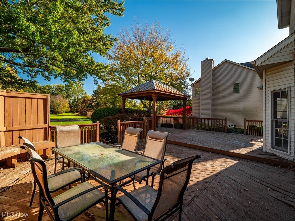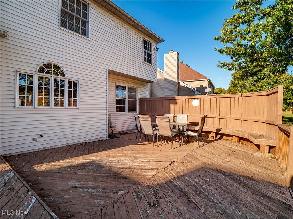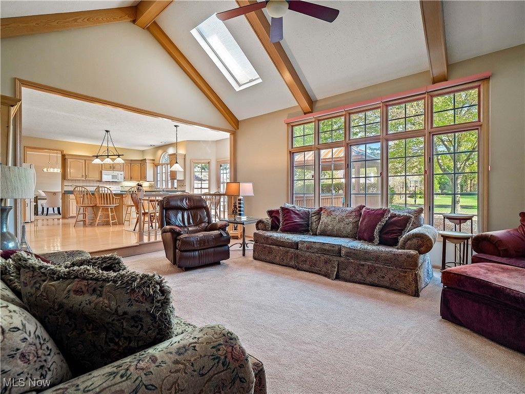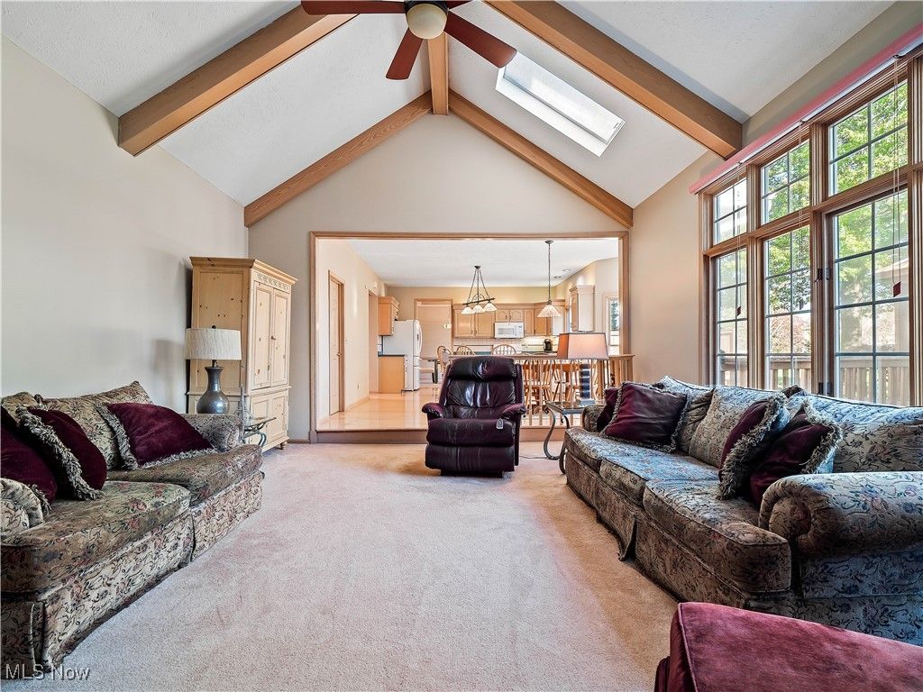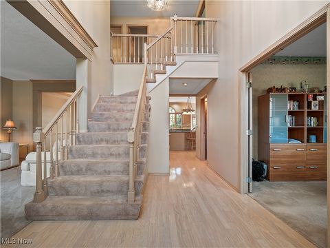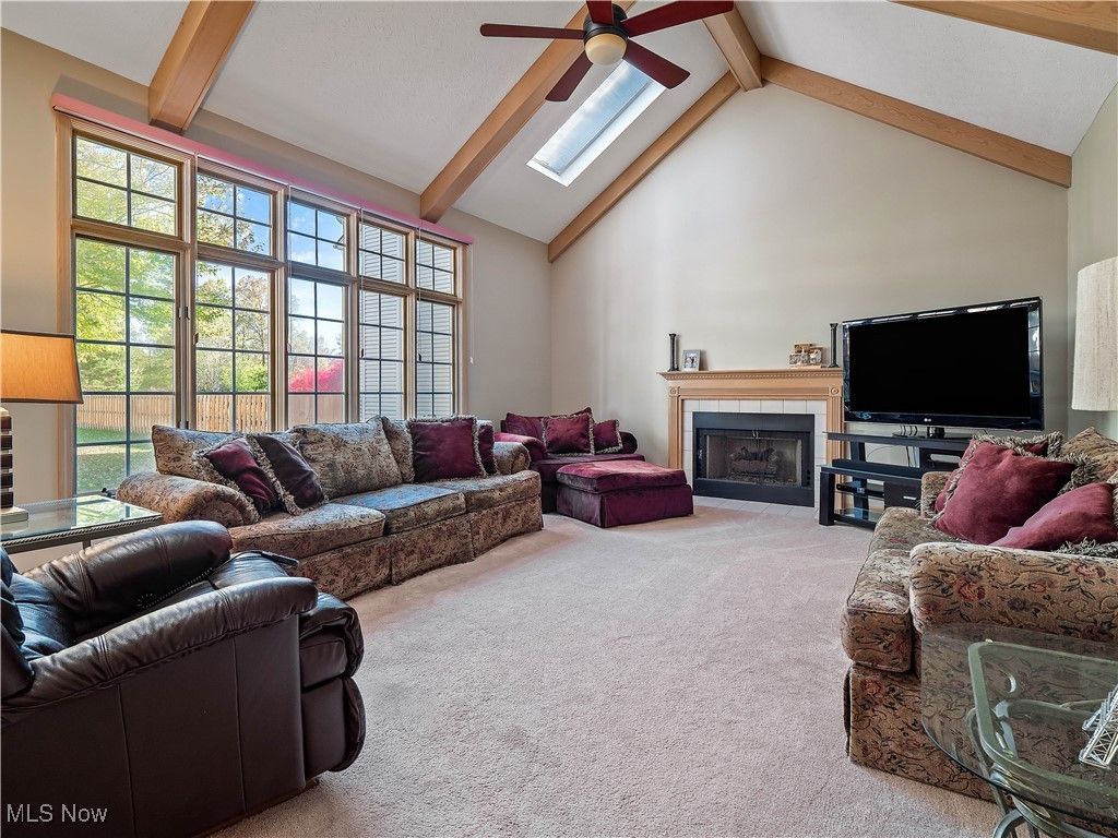 Welcome to this absolutely incredible home tucked away on a private cul-de-sac in Olmsted Township! Nearly 3,000 sq. ft. of living space awaits you, offering the perfect blend of open-concept living and timeless design. From vaulted ceilings with exposed beams to abundant natural light and flexible spaces - including two potential home offices - this property truly has it all. Step inside the two-story foyer and you'll immediately feel at home. A private office sits to your right, while a formal living and dining area to the left provides the ideal setting for holidays and large gatherings. The massive kitchen is a chef's dream, featuring ample cabinetry, generous counter space, and a large eat-in area that opens to the family room. Take a step down into the family room boasting vaulted ceilings with beams, skylights, a cozy fireplace, and a wall of windows overlooking your backyard - the perfect blend of warmth and light. The first floor also offers a convenient half bath and a laundry/mudroom combination. Upstairs, the spacious primary suite includes a sitting room (perfect for a second office, nursery, or reading nook), a large walk-in closet, and a luxurious five-piece ensuite bath with double doors. Three additional generously sized bedrooms and a full hall bath complete the second level. Step outside to enjoy your third-acre lot, featuring a massive deck with a covered section, open green space, and even your own 30 40 basketball half-court! Recent updates include New carpet (2019) - Roof (approx. 10 years old) - Furnace (approx. 8 years old). Enjoy neighborhood amenities such as a pool, tennis courts and MORE!!! This property is truly the perfect combination of elegance, space, and functionality - don't miss your chance to make it yours!