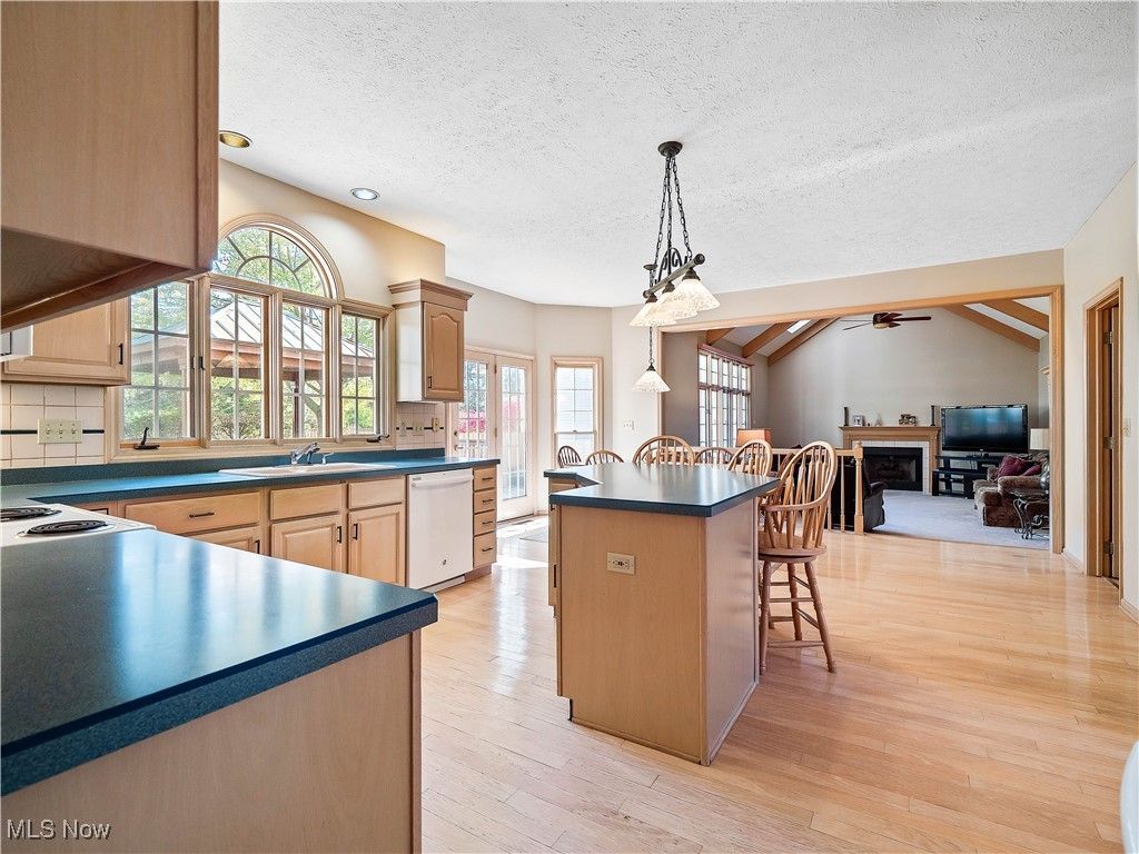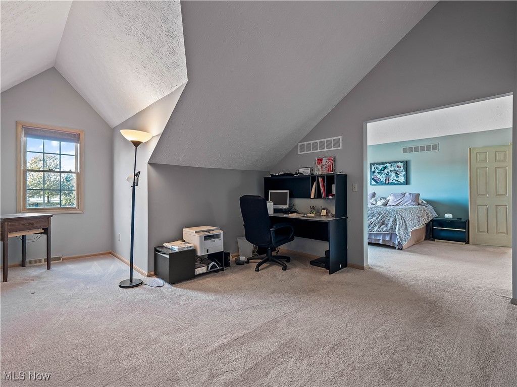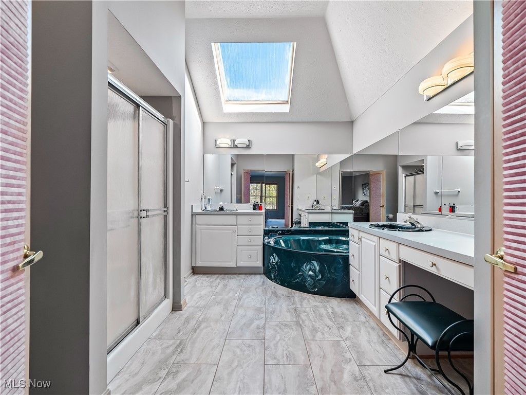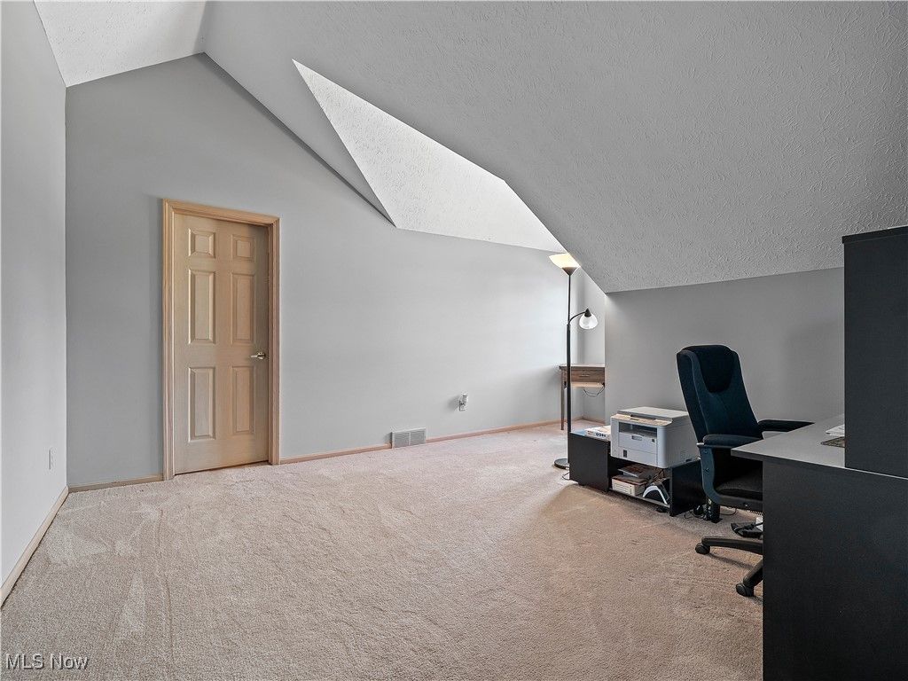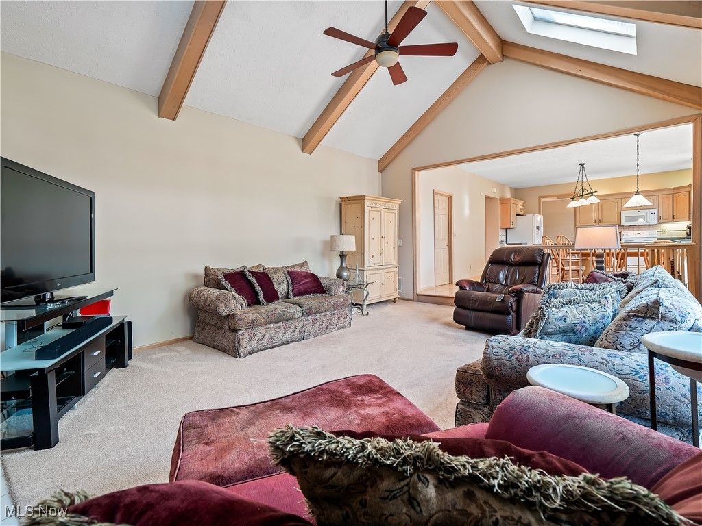 Welcome to this absolutely incredible home tucked away on a private cul-de-sac in Olmsted Township! Nearly 3,000 sq. ft. of living space awaits you, offering the perfect blend of open-concept living and timeless design. From vaulted ceilings with exposed beams to abundant natural light and flexible spaces - including two potential home offices - this property truly has it all. Step inside the two-story foyer and you'll immediately feel at home. A private office sits to your right, while a formal living and dining area to the left provides the ideal setting for holidays and large gatherings. The massive kitchen is a chef's dream, featuring ample cabinetry, generous counter space, and a large eat-in area that opens to the family room. Take a step down into the family room boasting vaulted ceilings with beams, skylights, a cozy fireplace, and a wall of windows overlooking your backyard - the perfect blend of warmth and light. The first floor also offers a convenient half bath and a laundry/mudroom combination. Upstairs, the spacious primary suite includes a sitting room (perfect for a second office, nursery, or reading nook), a large walk-in closet, and a luxurious five-piece ensuite bath with double doors. Three additional generously sized bedrooms and a full hall bath complete the second level. Step outside to enjoy your third-acre lot, featuring a massive deck with a covered section, open green space, and even your own 30 40 basketball half-court! Recent updates include New carpet (2019) - Roof (approx. 10 years old) - Furnace (approx. 8 years old). Enjoy neighborhood amenities such as a pool, tennis courts and MORE!!! This property is truly the perfect combination of elegance, space, and functionality - don't miss your chance to make it yours!
