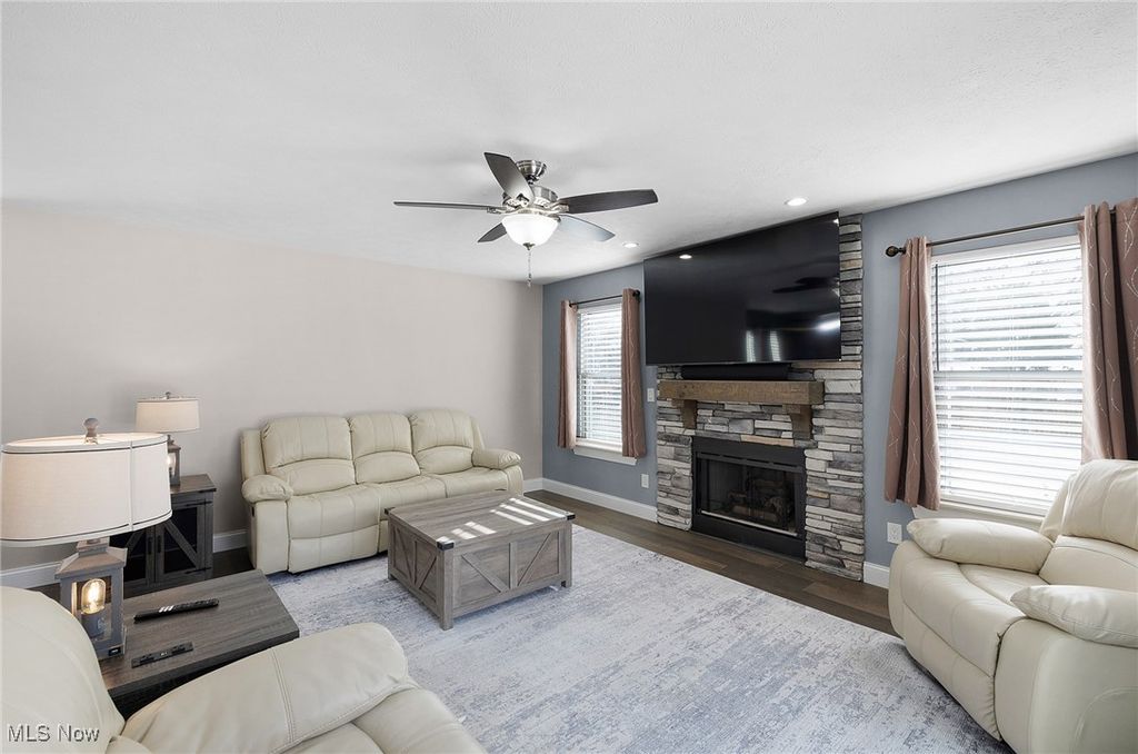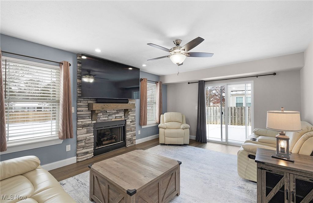 Beautifully updated from top to bottom, this welcoming colonial in a quiet cul-de-sac setting blends modern finishes with comfortable everyday living. Step inside to bright, open spaces where bamboo hardwood floors flow through the main level . The living room feels inviting with its gas fireplace and clean, neutral palette, opening effortlessly to a refreshed dining area and a gorgeous kitchen. Here, custom maple cabinetry with soft-close features, granite countertops, under-cabinet lighting, a wine fridge, and thoughtful storage upgrades create a truly elevated cooking experience . Upstairs, all bedrooms offer excellent natural light, ceiling fans, and hardwood floors. Both full baths were recently remodeled with striking tilework, smart LED mirrors, modern fixtures, and fresh finishes that feel spa-like and current . The walk-in closet in the primary suite is enhanced with recessed lighting for a clean, boutique feel . The lower level adds even more usable space with a newly finished basement featuring LVP flooring, updated lighting, and a bright, flexible layout perfect for relaxing, working, or hobbies . Storage is plentiful, including a well-organized utility area. Major improvements bring peace of mind: updated electrical, updated plumbing, newer windows, siding, gutters, and a sliding patio door; newer AC and furnace; rebuilt chimney and refreshed fireplace surround; new garage door; and a gas heater in the garage for added comfort . Outside, enjoy a brand-new concrete patio, steps, and walkways plus replaced gates - including a wide gate for easy access - within a private, fenced yard . Move-in ready, beautifully finished, and thoughtfully upgraded throughout, this home offers a seamless blend of style, comfort, and function - all in a convenient Medina location.